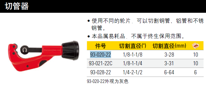 史丹利(Stanley)金属管割管器 不锈钢管空调铜管铝管铁管切管器 3-28mm 93-020-22