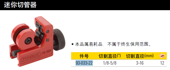 史丹利(STANLEY) 金属割管器 铝管铜管割刀切割器 切管器 93-033-22 现货