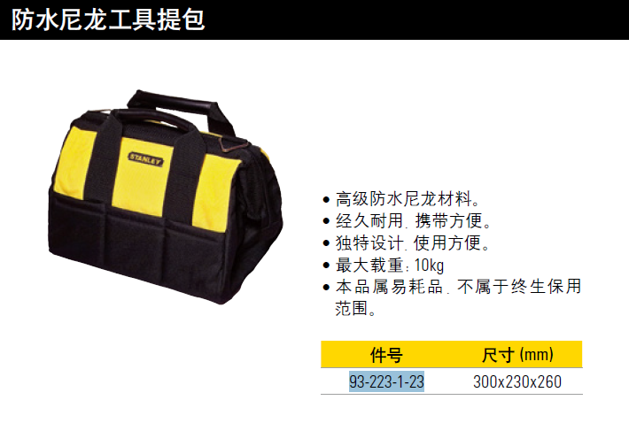 史丹利STANLEY 防水尼龙工具提包 手电钻包电工维修四袋双插孔 93-223-1-23 企业定制