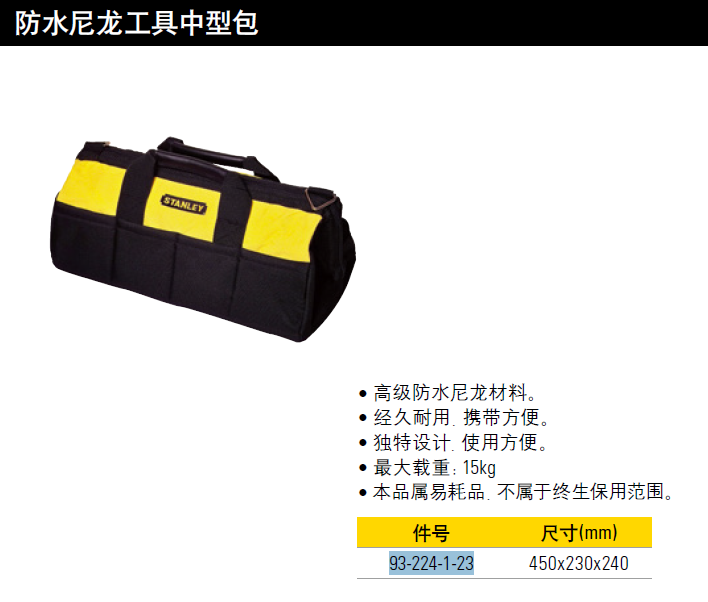 史丹利STANLEY 防水尼龙工具中型包 电工多功能维修工具包斜跨包背带包 93-224-1-23 企业定制