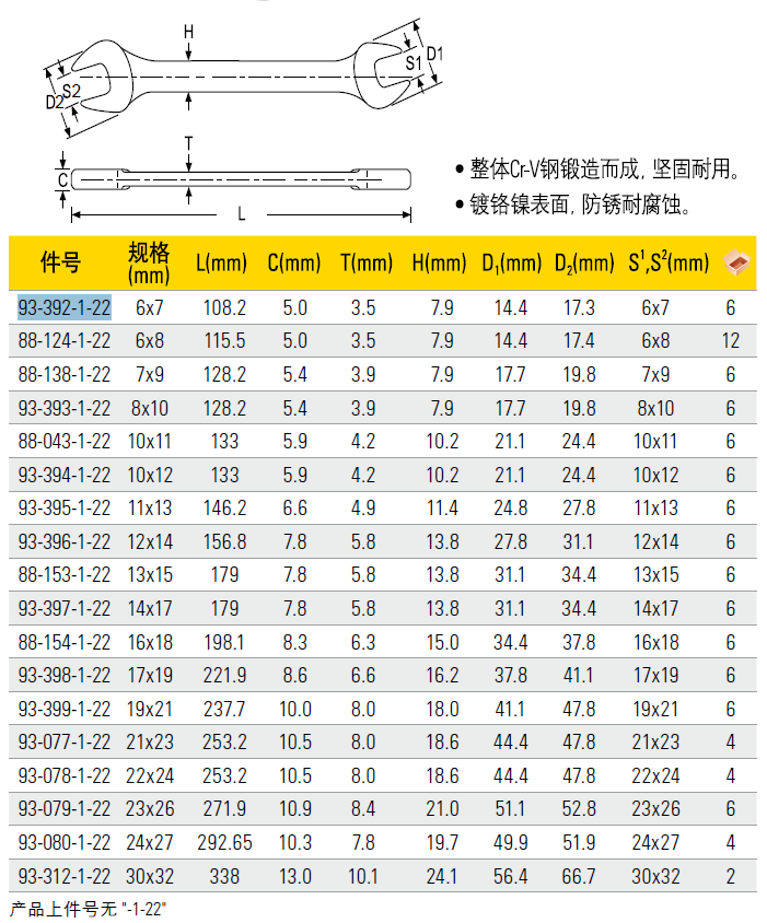 史丹利(Stanley)订制公制精抛光双开口扳手6x7mm93-392-1-22(付款后3-5天发货)