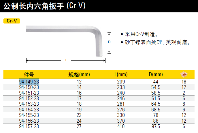 史丹利(Stanley)公制加长大号内六角扳手单个 12mm 94-149-23