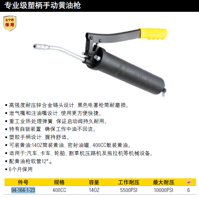 史丹利(Stanley)订制专业级塑柄手动黄油枪94-164-1-23(付款之后即发货)