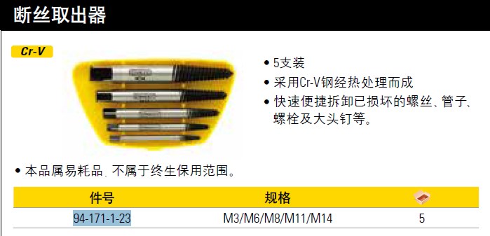 史丹利(STANLEY)5件套断丝取出器修滑牙滑丝反牙 94-171-1-23